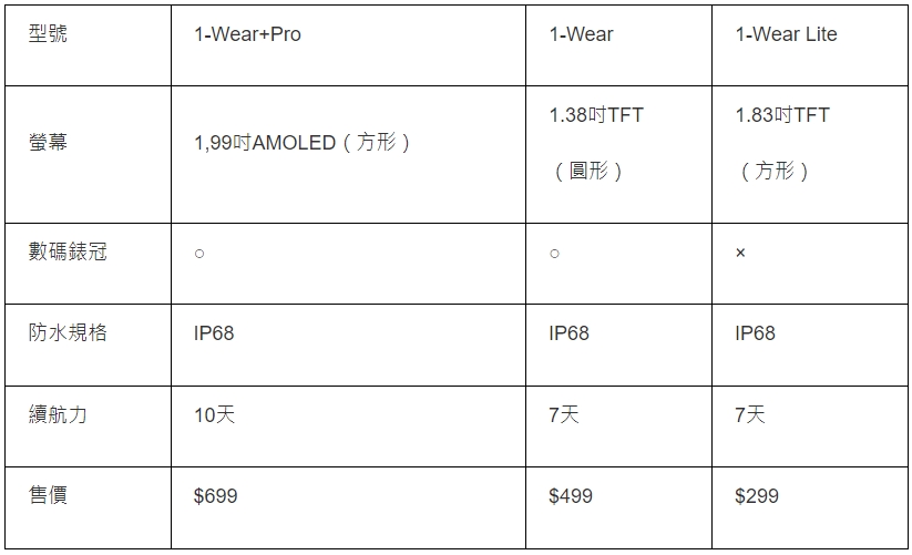 值得一提的是,1-Wear+ Pro随表附保护壳,进一步加强保护。至于圆形表面设计的1-Wear,萤幕为1.38吋,表侧亦有可旋转的不锈钢表冠,简单转换表带即可改变造型。最后是入门的1-Wear Lite,方形表面亦达1.83吋,比较特别是表带用上磁吸式表扣,佩戴时更方便。