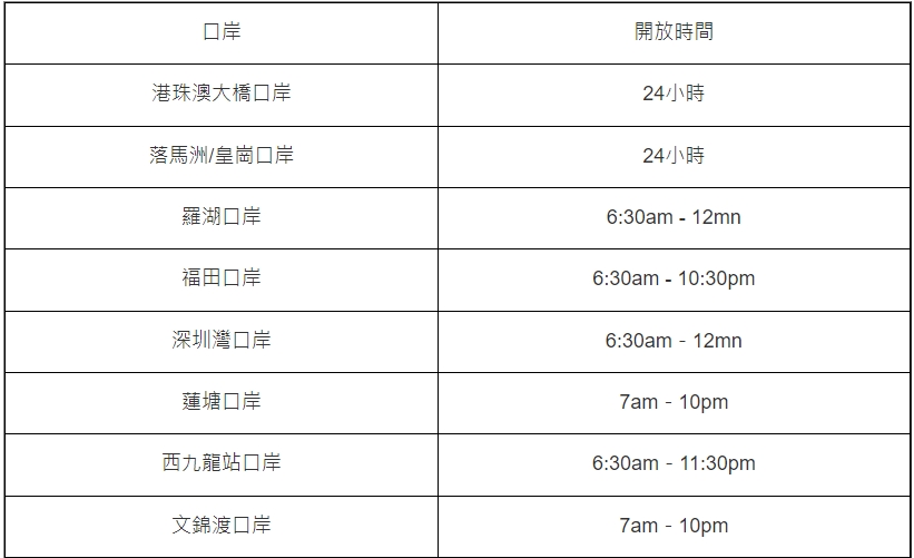 农历新年假期各口岸开放时间 往返香港/深圳/澳门/珠海