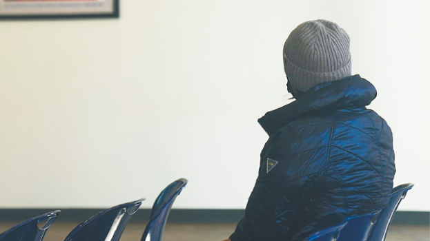 ▲图为一名被拘留的移民,坐在芝加哥美国移民和海关执法局承包商的大楼内,等待被安排驱逐出境。 美联社