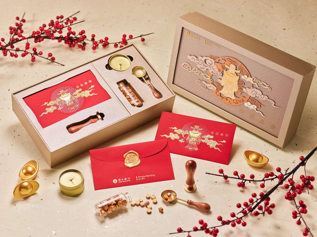 ▲恒生银行延续其传统财神设计,今年共推出4款,更为私人银行贵宾准备了限量版火漆印章礼盒。
