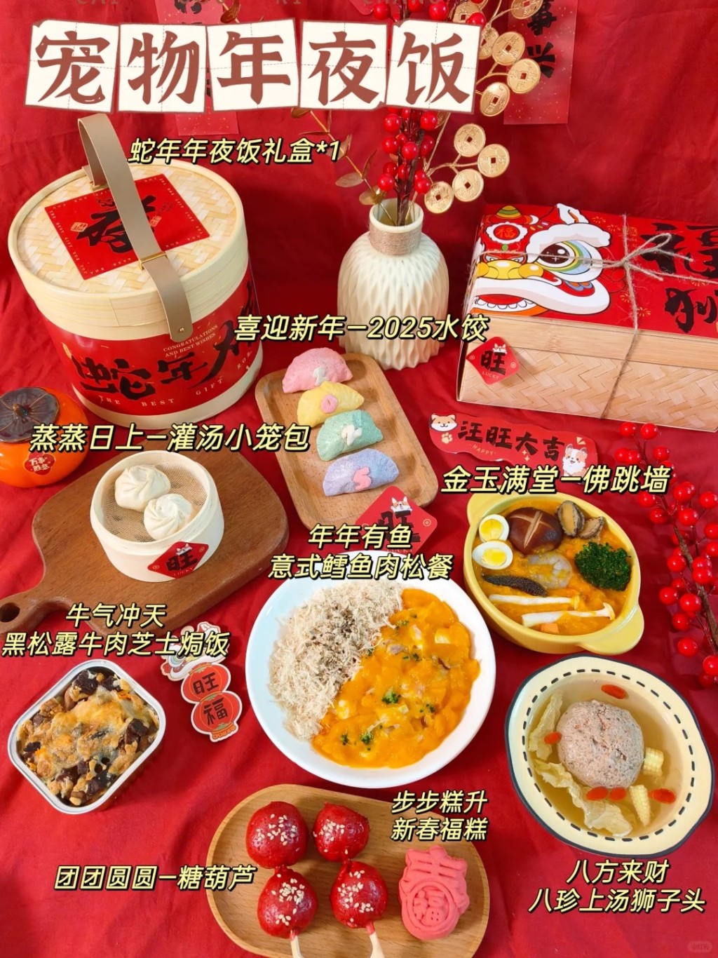不少“萌宠”家庭在自订团年饭的同时,也不忘给家中猫狗订购“宠物年夜饭”。近日电商平台上相关产品销售火爆,有的店铺甚至卖出了超百万件。比如广州某家宠物店就推出了小狗年夜饭套餐,菜品包括八宝福禄鸭、姑苏白什锦、芝士黑虎虾厚蛋堡、芙蓉狮子头等10道,共计168元。套餐一经推出即被约满,有网友感慨:“小猫小狗吃得比我还贵!”
