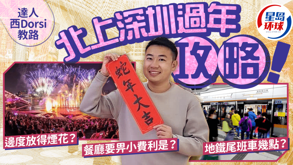 北上消费玩乐成为常态,相信不少港人在接下来的农历新年假期前后,都会游深圳逛街备年、过年,感受节庆气氛。 不过各个乡村各处例,新春期间北上深圳,有什么需要留意呢? 深圳地铁多条新线开通后,春节期间服务时间有否加长? 餐厅会否照常营业? 就由大湾区旅游达人西DorSi分享其经历,包括北上过年的饮食、交通、玩乐贴士,自然玩得更加尽兴!