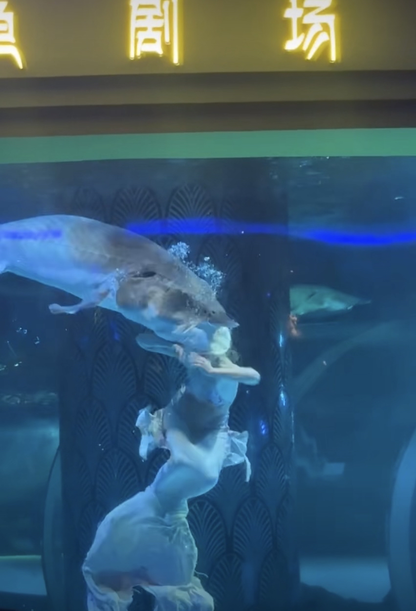 近日内地网络热传一段惊险影片,片中一名表演者扮成美人鱼在水族馆的水缸内表演,期间突然被一条鲟鱼咬头。悉该名美人鱼由俄籍女子玛莎(Masha)饰演,馆方向她赔偿了750元“精神损失”,并要求她不要公开事件。然而她被咬的一幕被游客拍下,早已在抖音疯传。