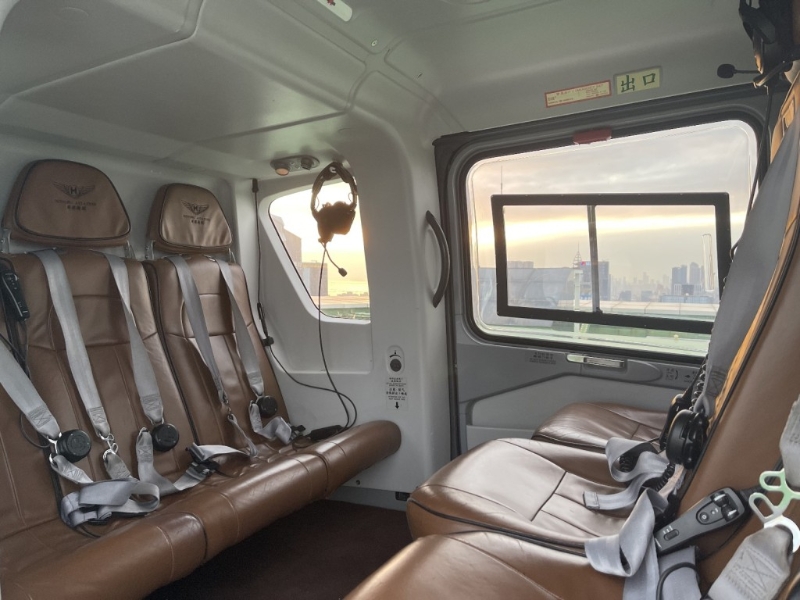 ▲福田空游航线的直升机内部。 高远摄