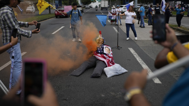 就在美国国务卿鲁比奥周六到访巴拿马前夕,巴拿马爆发反美示威,抗议美国总统特朗普威胁要夺取巴拿马运河,包括大学生和教师在内的示威群众愤怒焚烧特朗普及鲁比奥的肖像与照片,期间示威者和防暴警察冲突,警方要施放催泪气体驱散群众。