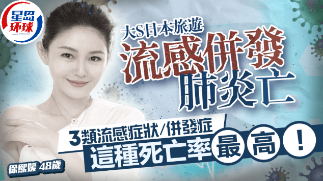 【大S病逝/徐熙媛/流感症状/日本】台湾女星徐熙媛(大S)2月2日传出病逝消息,3日早上其妹徐熙娣(小S)证实大S新年赴日本旅游期间,染上流感并发肺炎离世,终年48岁。患上流感会出现什么症状?有哪些致命并发症?哪种流感死亡率最高?症状与感冒有何分别?