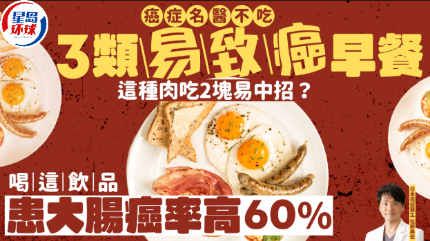 吃早餐也要小心致癌!有医生警告,部分常见的早餐食物暗藏致癌风险,当中如果每早吃2块这种肉类,患大肠癌风险恐增18%;常喝1款咖啡店常见的饮品,患大肠癌率亦恐增60%。