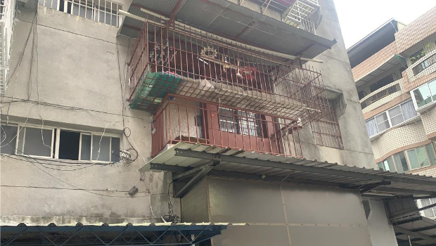 ▲姓凶嫌住处在公寓二楼,漆著显眼的红色墙壁。(中时新闻网)