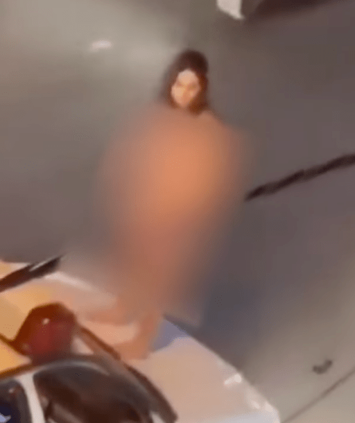 ▲网上近日流传一段影片,在伊朗第二大城市马什哈德繁忙街道上,一名伊朗女子脱光衣服,全裸站在一辆警车前拦路。