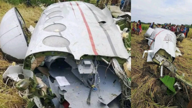 现场画面显示,小飞机似乎坠毁在一片田地,机身严重碎裂。 除了机上4人还有一头水牛死亡。