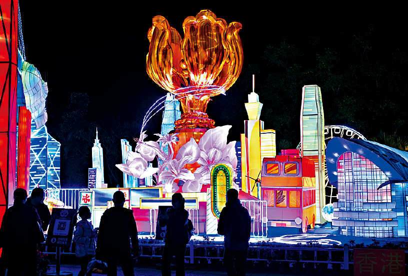 ▲在广州南沙的粤港澳大湾区灯会,有令人眼前一亮的“香港”灯组。