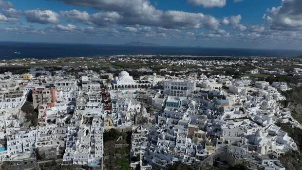 ▲2025年2月7日,无人机拍摄菲拉(Fira)村,随着在希腊圣托里尼岛的地震活动越来越大。(路透社)
