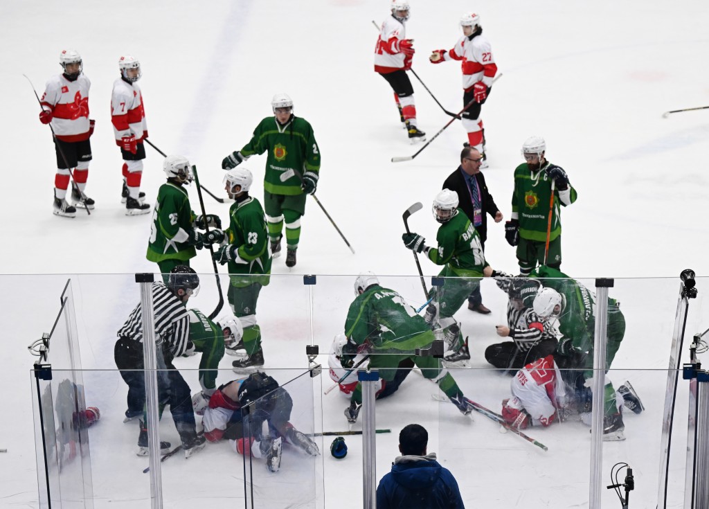 ▲男子冰球C组中国香港队与土库曼队的比赛结束后爆发激烈冲突。相片由港协暨奥委会提供