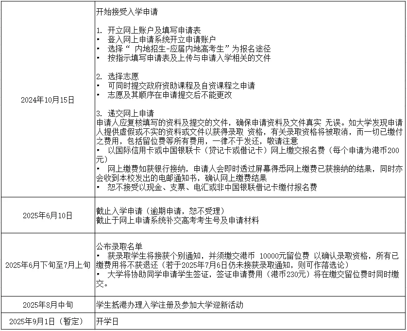 3、申请人必须于2025年6月10日或以前提供高考考生号,以便本校与有关省市之考试院提取申请人之高考成绩。