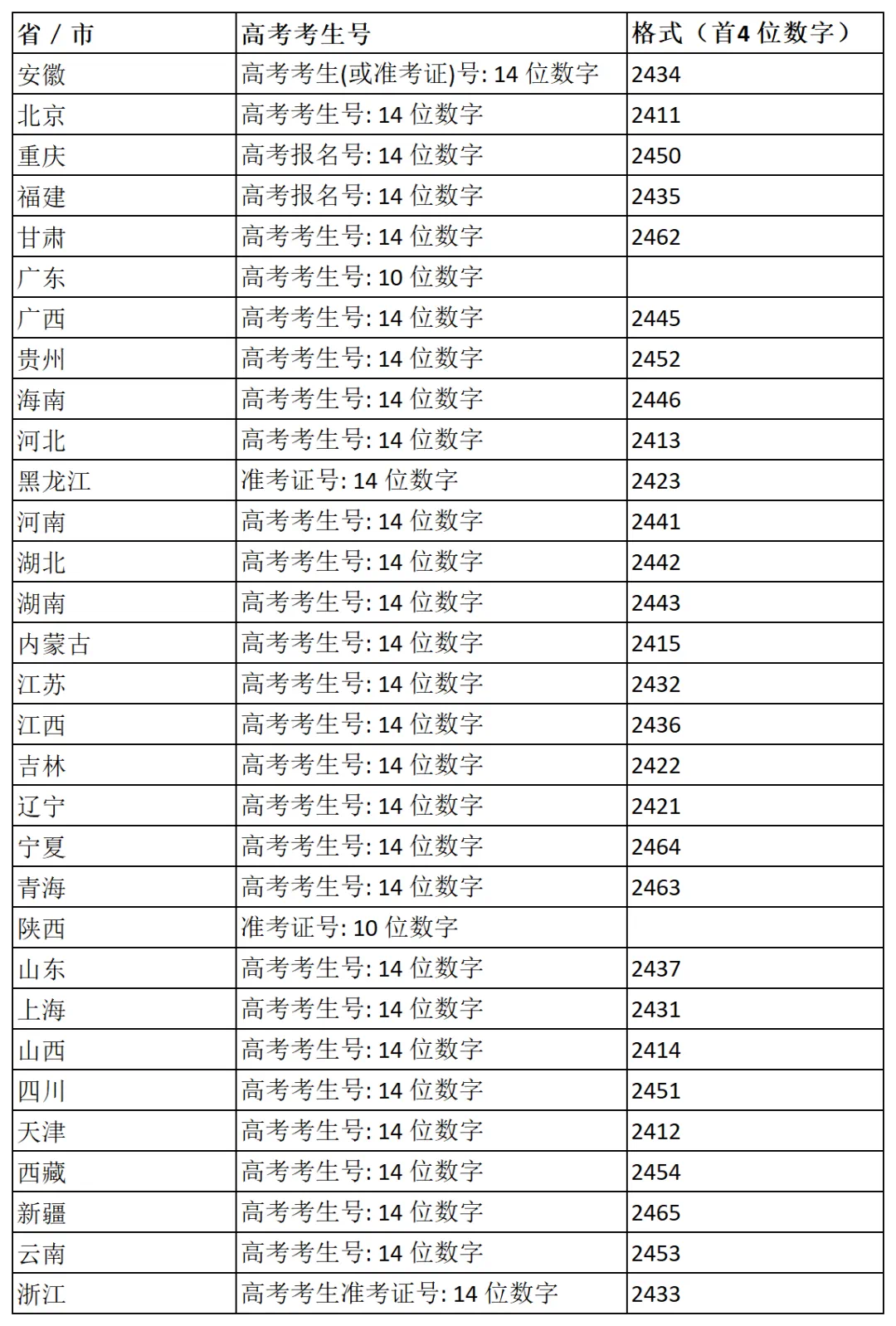 1、申请人请按下表各省/市招办的要求,通过网上申请系统填写高考考生号。
