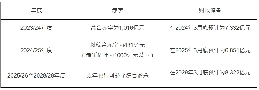 财政预算案赤字及财政储备: