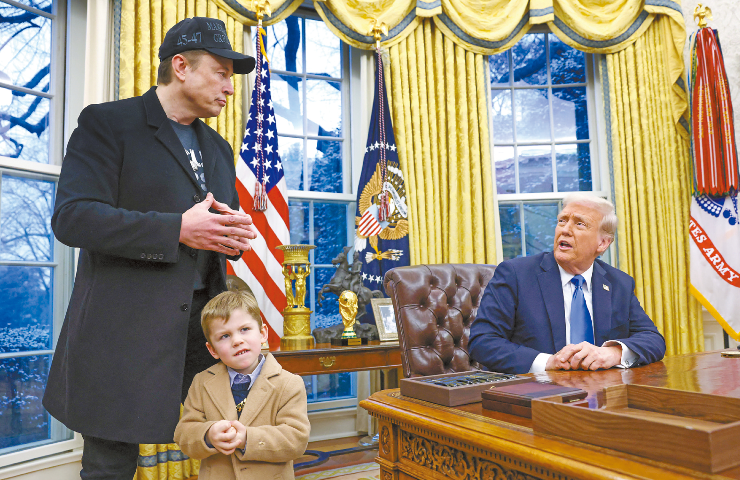 综合《今日美国》、《华盛顿邮报》及《华尔街日报》报道,特朗普11日在白宫签署行政命令时,马斯克也陪伴在旁,而且头戴“让美国再次伟大”(MAGA)鸭嘴帽,对抗批评声音的意味相当明显。