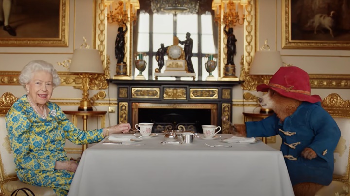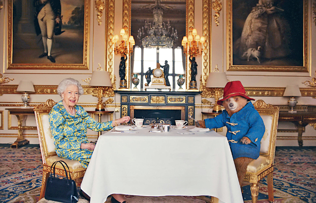 ▲英女皇和柏灵顿熊在短片中,平起平坐叹茶。
