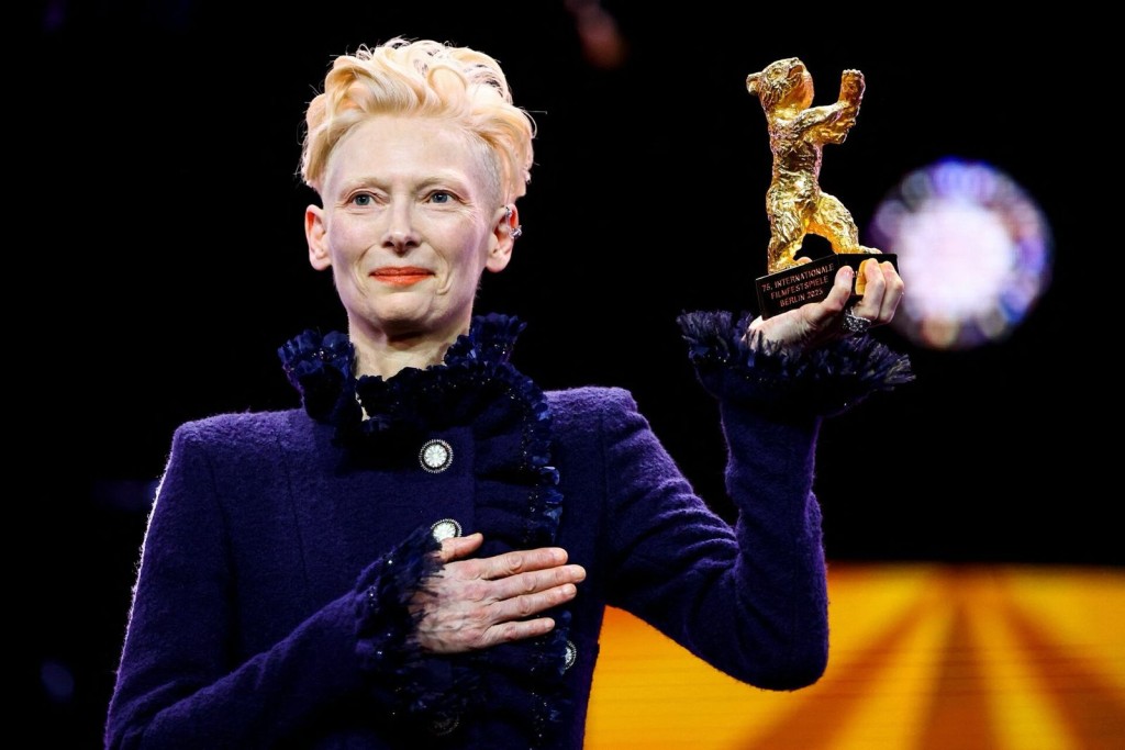 ▲蒂尔达·斯文顿获颁终身成就荣誉金熊奖。