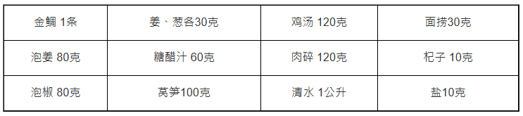 1.鲷鱼起肉切件,放入混合盐、姜及葱的水中浸45分钟。