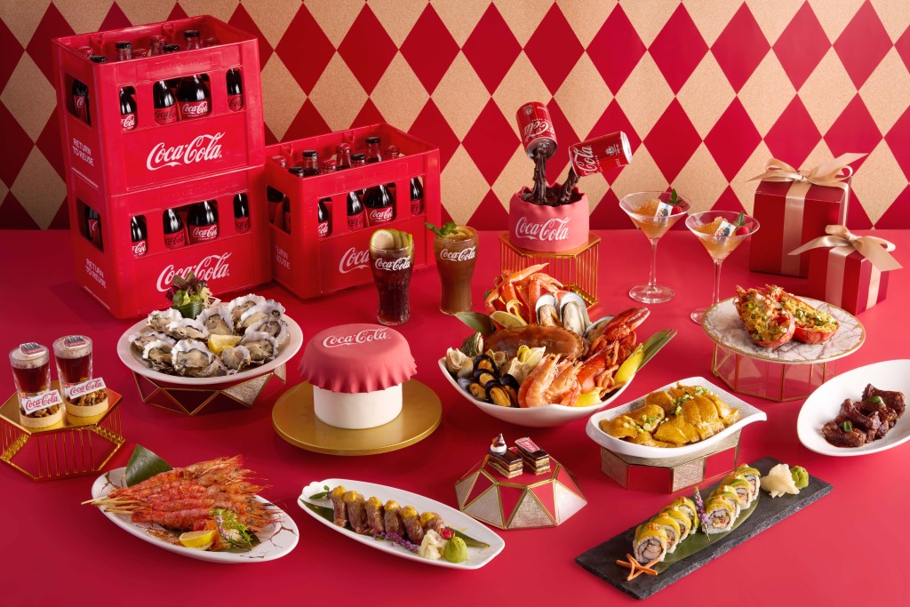 “可口可乐”无限飨乐盛宴自助晚餐亦有即开生蚝、龙虾、麵包蟹、蟹脚及青口等冰镇海鲜,亦有烧顶级烧西冷等各式烤肉、大竹笼蒸海鲜,也有鸭肝、牛油麦皮虎虾或彩椒胡椒炒蟹等铁板烧主菜,也有蚝皇花胶螺片扣鸭掌、避风塘龙虾钳及士多啤梨金沙骨等热荤,亦有小朋友最爱的手工意式雪糕、Häagen-Dazs雪糕等。周末亦限定推出日本直送即开原条鲜鱼、化皮金陵乳猪件等,大、小朋友都不容错过。