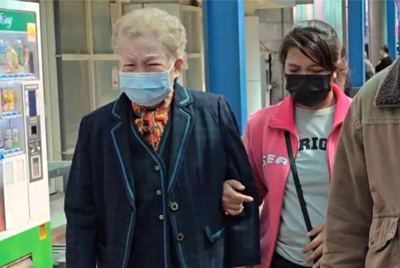 ▲柯文哲父亲柯承发大体17日上午移灵到新竹市立殡仪馆,柯妈(左)在亲友的搀扶下到场。中时