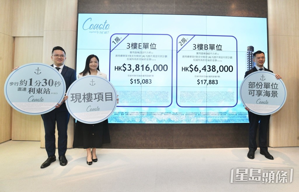 宏安发展的鸭脷洲Coasto今公布首批单位价钱,涉及30伙,涵盖23伙1房及7伙2房。发展商为该批单位提供最高30%折扣优惠,另为1房买家提供额外3.8万元家具津贴优惠,折实售价约381.6万元起,折实平均呎价约17,085元。