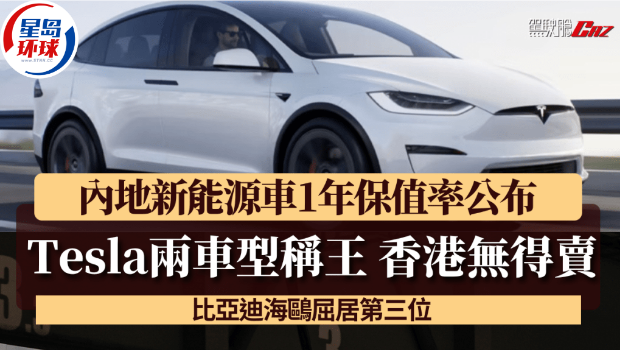 2024年内地新能源车1年保值率,Tesla雄据首次两席,分别为Model X及Model S,保值率分别为81.72%及78.55%,可借两款车已没有引入香港发售,因为再没有生产右軚版。至于位列第3的是比亚迪海鸥,保值率75.29%,成为国产新能源车最保值车型。蔚来的ET5T排在第4位,保值率74.08%;极氪ZEEKR 009则排第5位,保值率为73.4%。