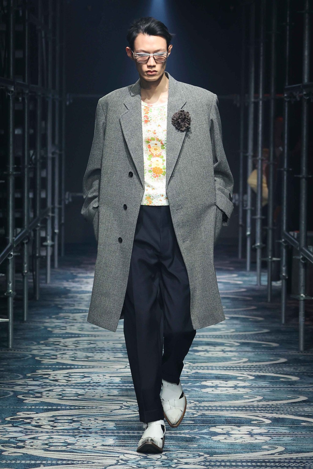 秋冬巴黎男装周圆满结束后不久, Dior便宣布男装创意总监K i m Jones离任的消息,正式为其七年任期划上句号,亦即是说秋冬系列正是他主理的最后一份派台作!Casanova的意象贯穿整个系列,塑造出“风流才子”的形象,部分造型以丝带蒙眼,加添一份神秘感。新设计糅合女士高订服和男士成衣系列的风格,同时呼应灵感来自18世纪的华丽细节。Christian Dior于1954年为秋冬系列打造的“Ligne H”线条,此女装男穿概念成为秋冬男装新轮廓。新系列服装层次多变,由贴身到宽松剪裁,反覆呈现于长褛和礼服大衣上,蝴蝶结、刺绣、垂坠绉褶等经典女装设计元素亦到处可见。今季特意选用丝绒和绸缎营造奢华隆重的效果。秋冬以黑白色作主调,又夹杂淡雅粉红色,优雅高贵。时装骚压轴登场的粉红色刺绣长褛,灵感源自Monsieur Dior 1948年春夏高订系列的“Pondichery”造型。