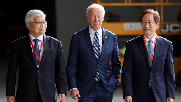 ▲2022年12月台积电美国厂移机典礼,时任总统拜登(图中)亲自出席。(图/路透社)