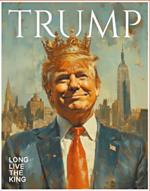 ▲白宫在两大平台X和Instagram发布插画,参考《时代》杂志的封面设计,但将刊物名称改为“特朗普”,并配上“国王万岁”的标题。网上图片