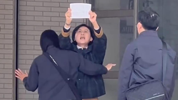 ▲林岱桦涉诈助理费事件,她被带进调查局南部机动组约谈时高喊“政治干预司法,司法干预初选!”表达司法介入初选的不满。(民众提供/郭良杰高雄传真)