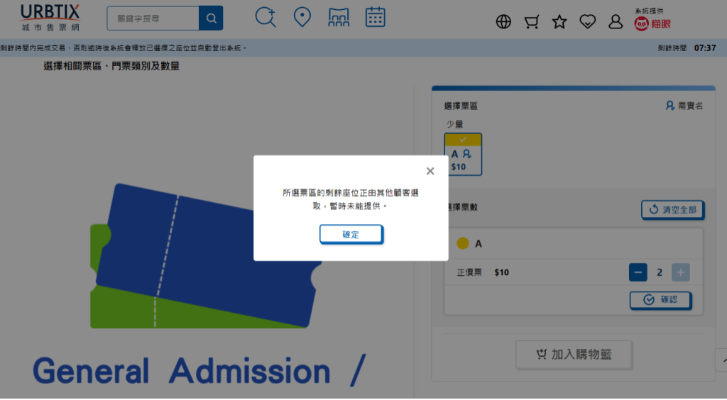 记者其后于10时半进入相关购票网站,不用排队即可直接进入购票页面,但到选购门票时,惟不能将门票加入购物篮。约30分钟后,门票已全部售罄。