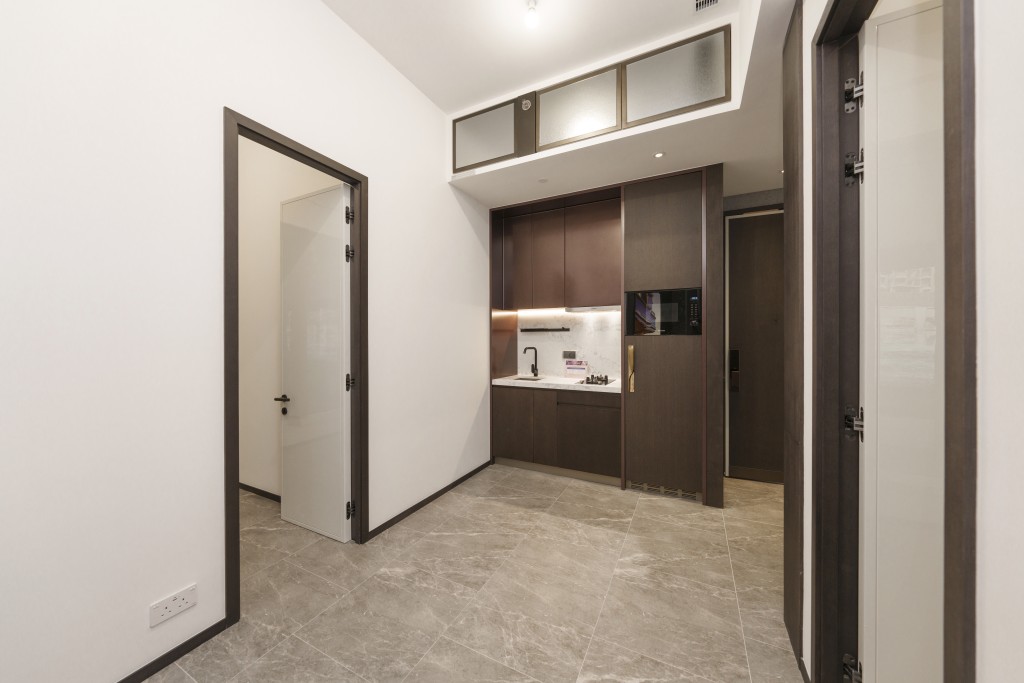 另开放以2座23楼8室为蓝本搭建的无改动示范单位,面积351方呎,2房间隔。同样配有天花储物位置,以及嵌入式鞋柜,贴心照显住户所需。
