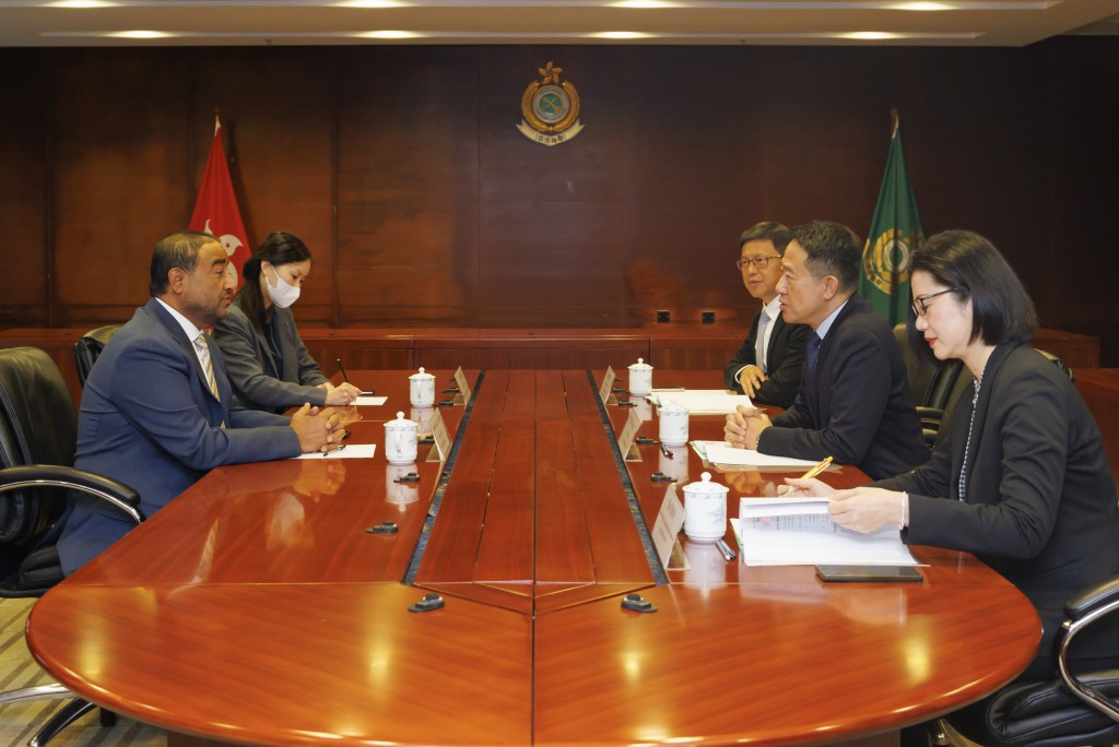 海关关长陈子达今天(21日)在海关总部大楼与阿联酋阿布扎比海关关长Rashed Lahej Al Mansoori进行礼节性会面,藉此增进双方友好关系及加强业务联系。