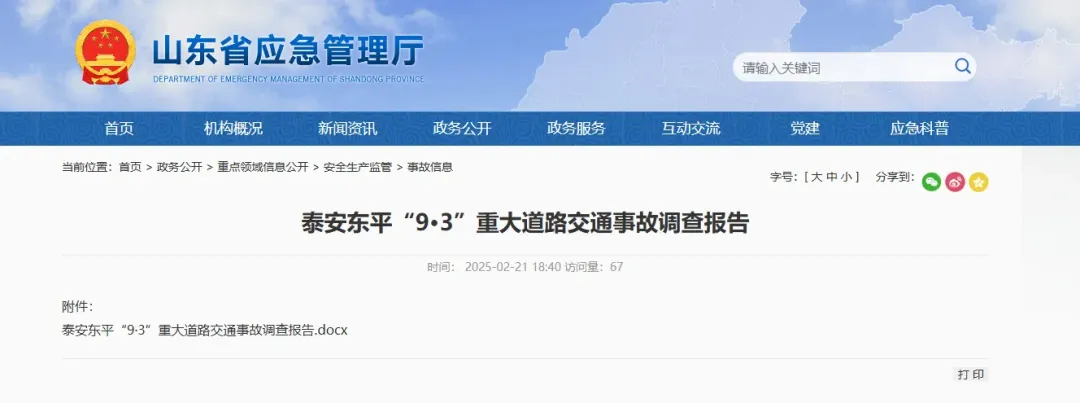 近日,山东省人民政府发布关于泰安东平“9·3”重大道路交通事故调查报告的批复,详情如下: