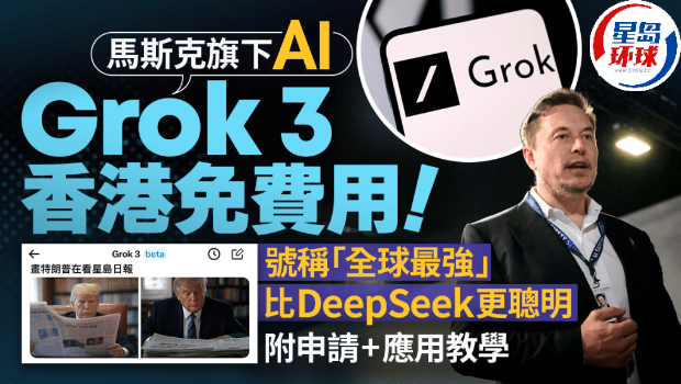 马斯克旗下的人工智能公司xAI宣布,最新AI系统Grok 3限时免费开放给全体X(前称:Twitter)用户,香港用家无需透过VPN也可使用! 号称“全球最强”的全新AI系统Grok 3于本周二(18日)正式发布,马斯克对这款AI给予极高评价,指它超于市面上的其他已知产品,包括DeepSeek、ChatGPT、Gemini等对手,即看下文了解详情。