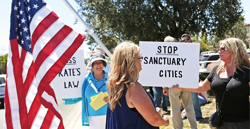 ▲为配合总统特朗普的打击非法移民政策,多个红州的共和党议员正寻求立法,禁止出台庇护移民政策。 法新社资料图片