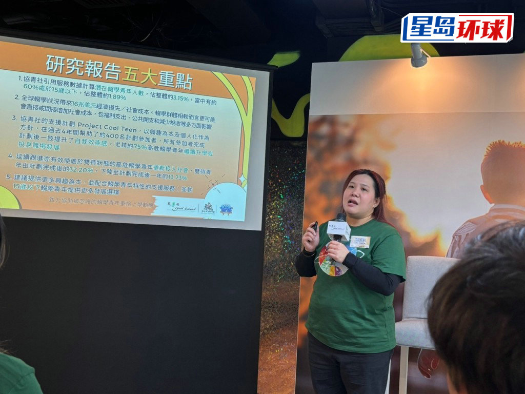 协青社今日(24日)发表有关辍学及高危辍学青年研究报告,结果显示辍学青年人数占整体3.15%,约有2万人,当中6成年龄为15岁以下,占约1万人,且有上升趋势。协青社自2020年起推出计划帮助辍学青年,已服务431个个案,呼吁社会有心人士捐助,令项目可持续服务更多个案。