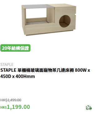 ▲STAPLE单柜桶玻璃面宠物茶几连床褥减价低至$1,199