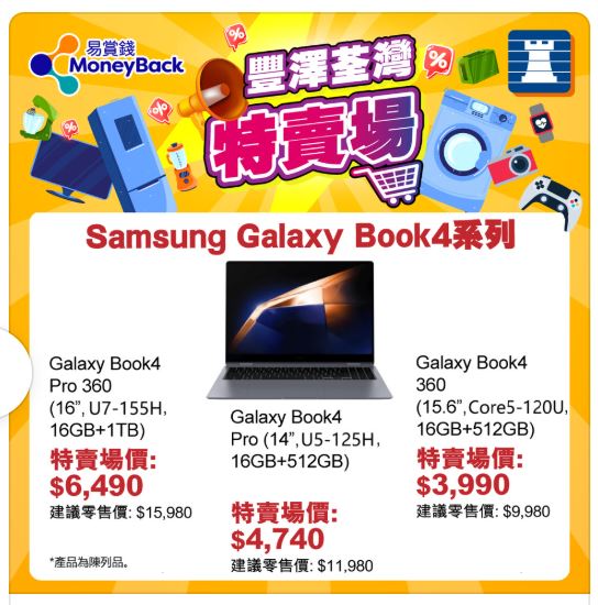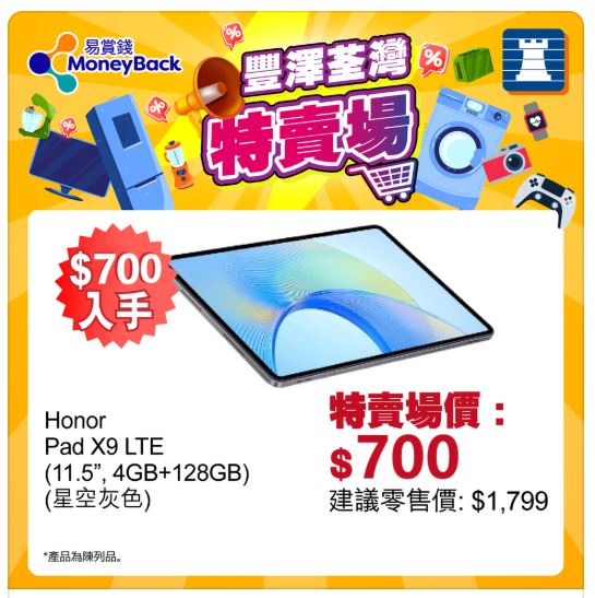 在丰泽荃湾特卖场,将有机会以超低价格入手优质电子产品及家电,热门产品包括 Honor Pad X9 LTE,特价$700(建议零售价$1,799)、Xiaomi Pad 6 低至 34折,特价$1,399(建议零售价$4,167),超高CP值的平板电脑,功能强大!Samsung Galaxy Book4 高端手提电脑系列全线大减, Pro 360 特价$6,490(建议零售价$15,980)、Pro 特价$4,740(建议零售价$11,980)、Samsung Galaxy Book4 360 特价$3,990(建议零售价$9,980)。