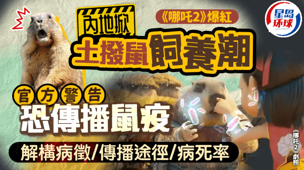 【哪吒2/土拨鼠/鼠疫】近期上映的内地电影《哪吒2》全球票房大收,《哪吒2》热潮连带电影中神态“蠢萌”的土拨鼠角色也爆红,更在内地掀起一股饲养热潮。不过,国家卫健委及疾控局2月26日发出警示指,土拨鼠是传播鼠疫的途径之一,“再萌也不要亲密接触”。香港卫生防护中心指,感染鼠疫的病死率最高可达60%。