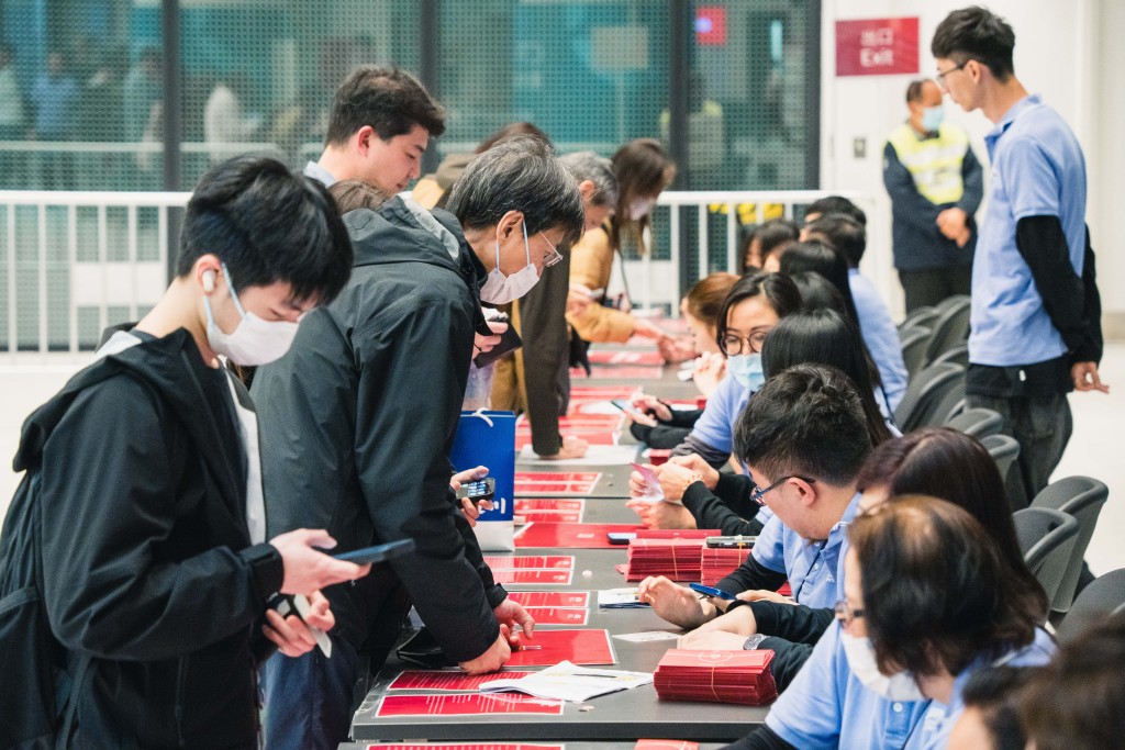 今明两日的换领时间为中午12时至晚上10时,开幕礼当天换领时间为早上9时至下午3时。换票人士须携同电子换领券及身份证明文件,到启德体艺馆换领实体入场门票。记者到场时,在体艺馆换领门票的人数不算太多,到场人士基本上不用排队,只需花数分钟核对身份,便可顺利换取门票。