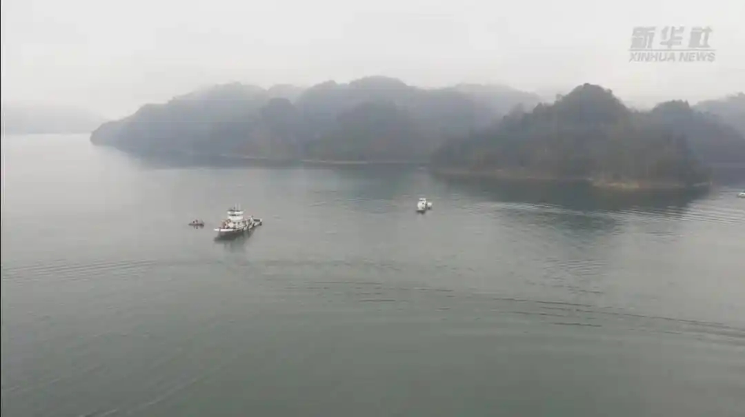 ▲据介绍事故现场共聚集专业救援队伍10支212人,24小时开展水下搜救作业。新华社视频截图