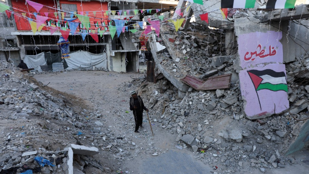 ▲流离失所的加沙人在废墟中迎接穆斯林斋月。 路透社