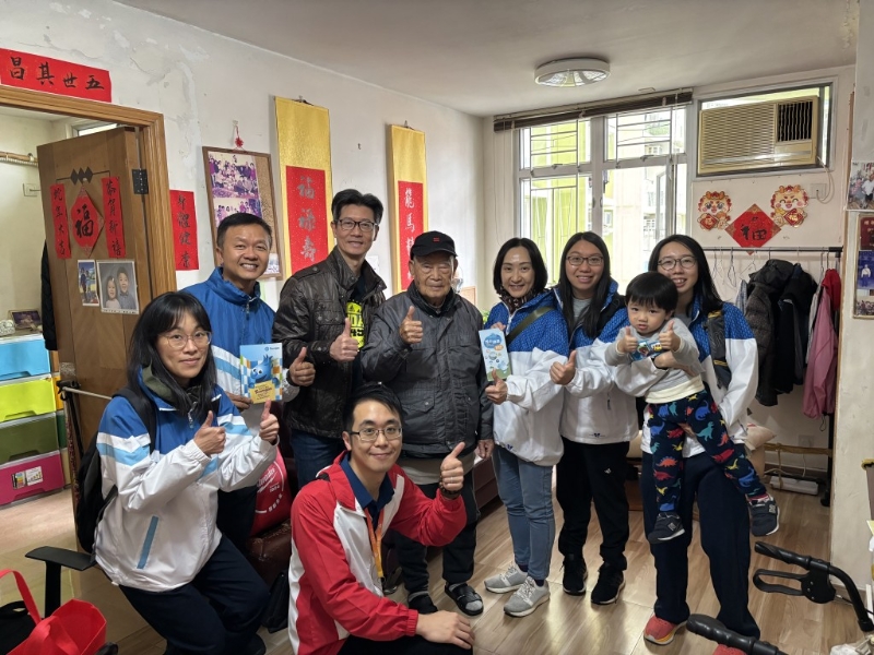 煤气公司温馨义工队与水务署义工队组成的“水火共融义工队”,参与长者安居协会活动,上门探访独居及双老长者,为他们送上关怀与平安福袋,又协助测试平安钟,提升长者家居安全。