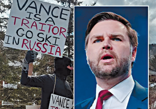 综合霍士新闻与英国《卫报》报道,数百名示威者1日集结在佛蒙特州沃伦市(Warren)的滑雪度假村,半哩长的人链中出现不同标语,指责万斯是“叛徒”、“纳粹败类”,与总统特朗普一起向俄罗斯总统普京献媚,因此应去俄罗斯滑雪。