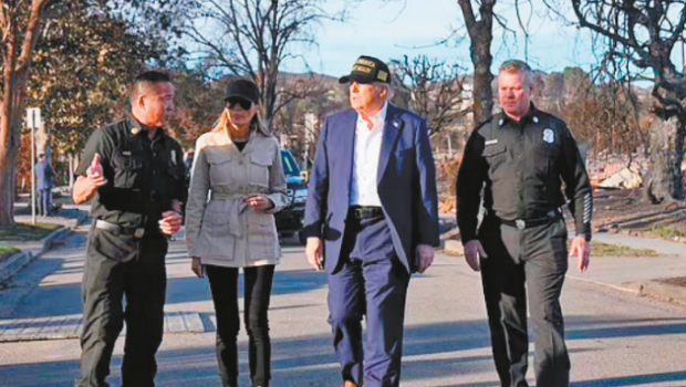 ▲总统特朗普以杜绝山火隐患为由,在行政命令中要求联邦加快启动森林管理计划,图为他早前到洛杉矶视察灾情。 美联社