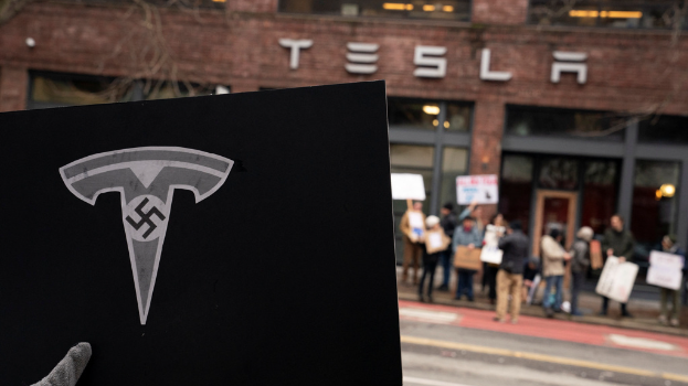 ▲美国多地爆发抵制特斯拉示威活动。(图/路透社)