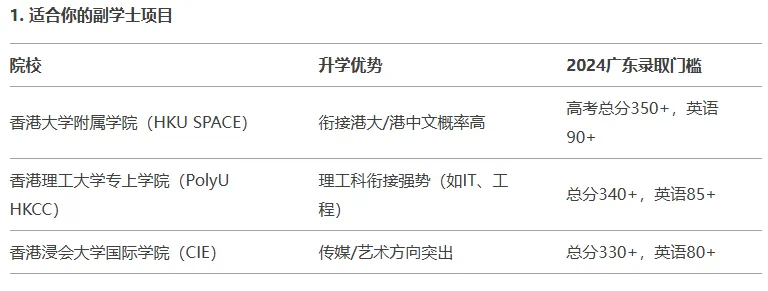 若希望未来进入港前三(港大/港中文/港科技),可选择顶尖副学士项目作为跳板: